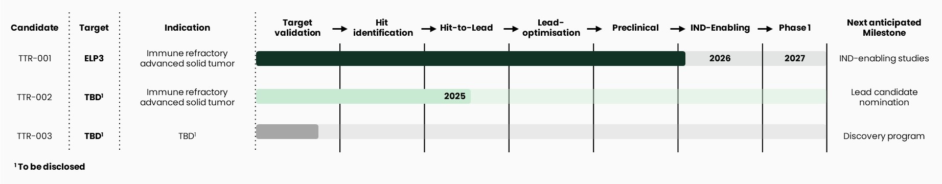 - Our breakthrough technology targets tRNA-modifying enzymes to create first-in-class small molecules—delivering multi-cancer therapies from a single drug, accelerating returns with scalable impact.